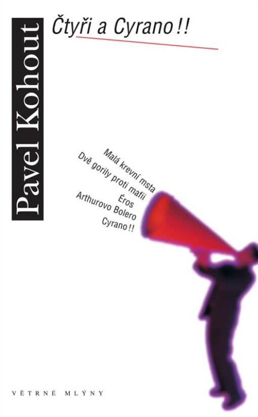 Rozebrané vydání Kohoutových aktovek ŠEST A SEX v nakladatelství Mladá fronta a následný zájem čtenářů o sborník čtyř původních dramat téhož autora, nazvaný HRY V POSTELI, i soubor jeho čtyř jevištních adaptací románových předloh ve svazku LESK CIZÍHO PEŘÍ, oboje vydáno nakladatelstvím Paseka — to vše dohromady vede Větrné mlýny k vydání další knihy pro jeviště určených prací Pavla Kohouta z posledního období. Čtyři texty původní — Politický thriller MALÁ KREVNÍ MSTA, turbulentní situační frašku DVĚ GORILY PROTI MAFII, soudobé občanské drama ÉROS a moderní svébytnou variaci na Schnitzleruv erotický dekameron REJ, pojmenovanou k poctě autora předlohy ARTHUROVO BOLERO — doplňuje nové zpracování hry Edmonda Rostanda. Pod názvem CYRANO!! dává všeobecně známé předloze originální podobu „hereckého minimuzikálu“ a osvobozuje ji na mnoha místech z krunýře veršů, které zas jinde volně přebásňuje, přičemž pietně ponechává klasické citáty z překladu Jaroslava Vrchlického. I čtvrtý soubor Kohoutových dramatických prací, doprovázený autorovými zprávami o jejich vzniku, si určitě najde čtenáře-milovníky divadla, kteří rádi inscenují hry ve vlastní představě; mezi nimi jistě nebudou chybět čtenáři Katyně, Hvězdné hodiny vrahů, Nápadů svaté Kláry a dalších románů Pavla Kohouta.