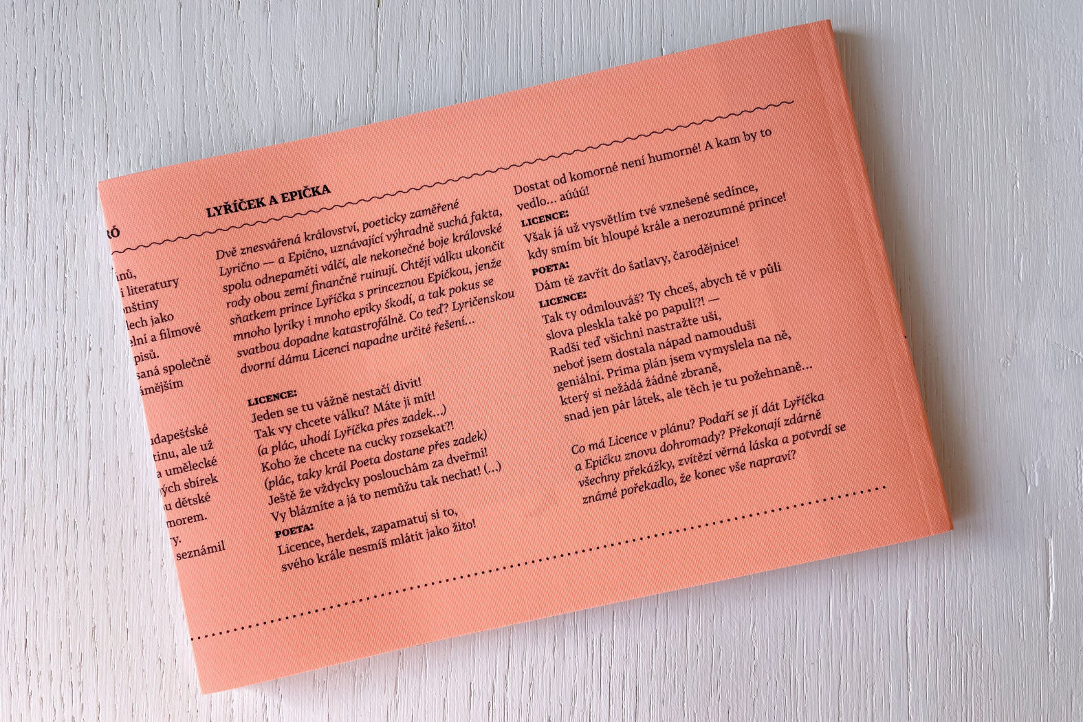 Dvě znesvářená království, poeticky zaměřené Lyrično — a Epično, uznávající výhradně suchá fakta, spolu odnepaměti válčí, ale nekonečné boje královské rody obou zemí finančně ruinují. Chtějí válku ukončit sňatkem prince Lyříčka s princeznou Epičkou, jenže mnoho lyriky i mnoho epiky škodí, a tak pokus se svatbou dopadne katastrofálně. Co teď? Lyričenskou dvorní dámu Licenci napadne určité řešení...